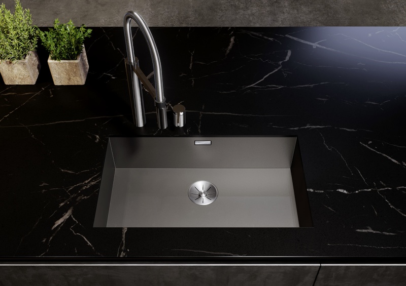 Мойка Blanco Zerox 700-U Dark Steel - мойка для кухни премиум класса с нулевым радиусом закругления внутренних углов, выполнена из нержавеющей стали толщиной 1.1 мм и подходит для установки в кухонный шкаф шириной 80 см. Глубина чаши мойки составляет 19 см. Модель Zerox 700-U Dark Steel 526244 производится на заводе Blanco в Германии и на нее распространяется официальная гарантия магазина в течение 1 года.